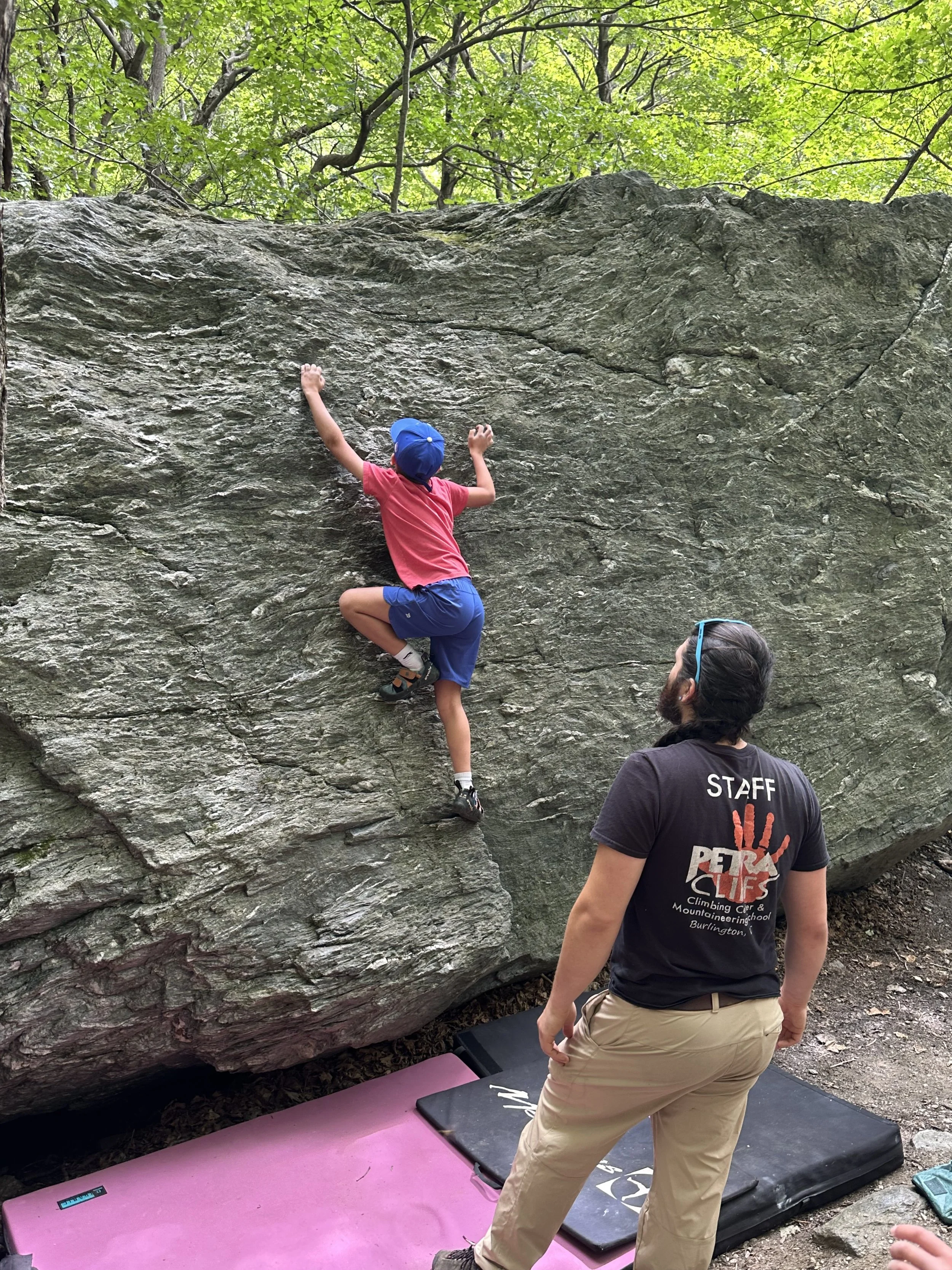 Under the leadership of Petra Cliffs’ professional guides, campers will explore some of the many outdoor climbing areas that make Vermont famous as a climbing destination. Focusing on climbing-specific skills like knots and hitches, route-reading, boulder pad placement, and more, this small group setting is a great way for your climber to build self-confidence, develop teamwork, and get stoked!